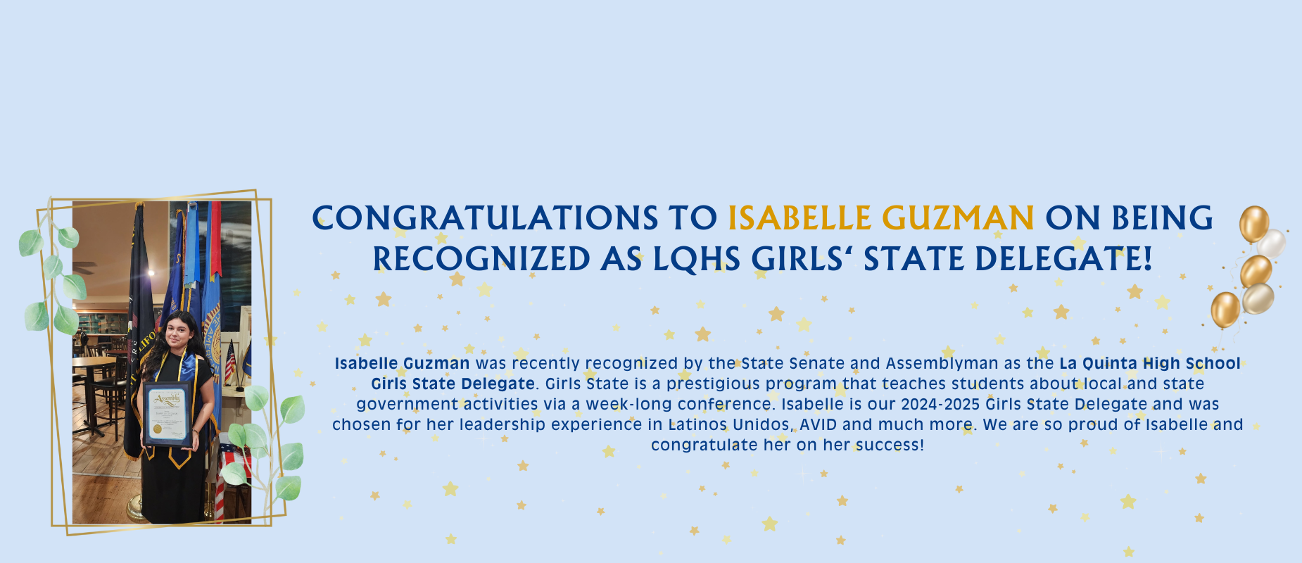 - #1 High School in GGUSD according to US News and World Report.